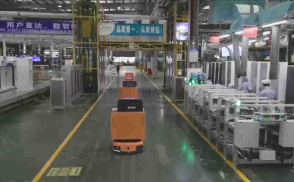 为车载冰箱物流配送打造的智能解决方案,,包含产中物流通过潜伏举升AMR搬运至线边,,,产后成品物流智能仓储,,,流程包含产中物流智能齐套入库,,,,线边安灯叫料AMR智能配送至线边,,,成品入库、、出库,,通过无人堆高车机器人,,智能仓储管理替代人工作业管理,,,,实现更高存储、、、更高效率、、、更具柔性化的解决方案。。。
