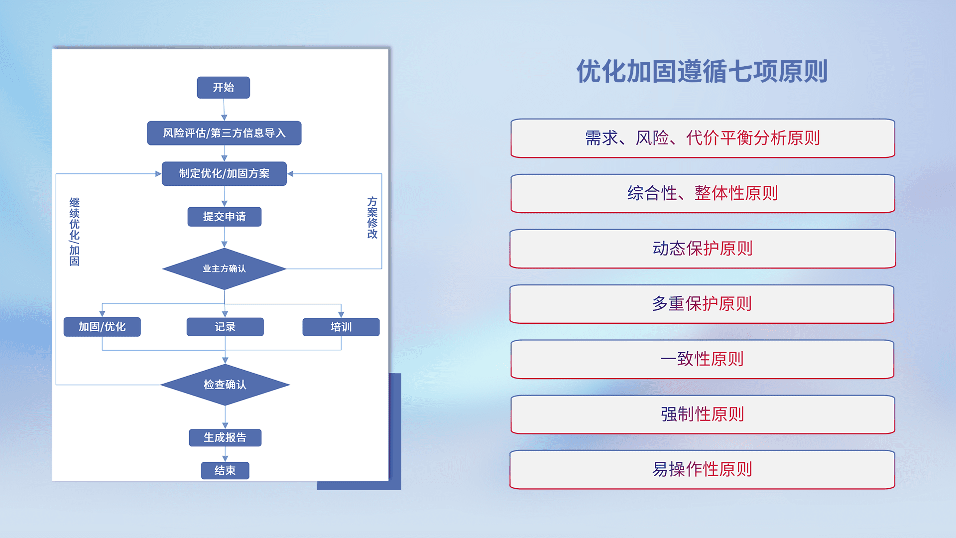 最大程度利用现有资产,,,,对评估发现的问题进行封堵与整改,,防止漏洞被利用,,,,提升整体网络安全性,,,为客户带来高标准的优化加固服务。。。