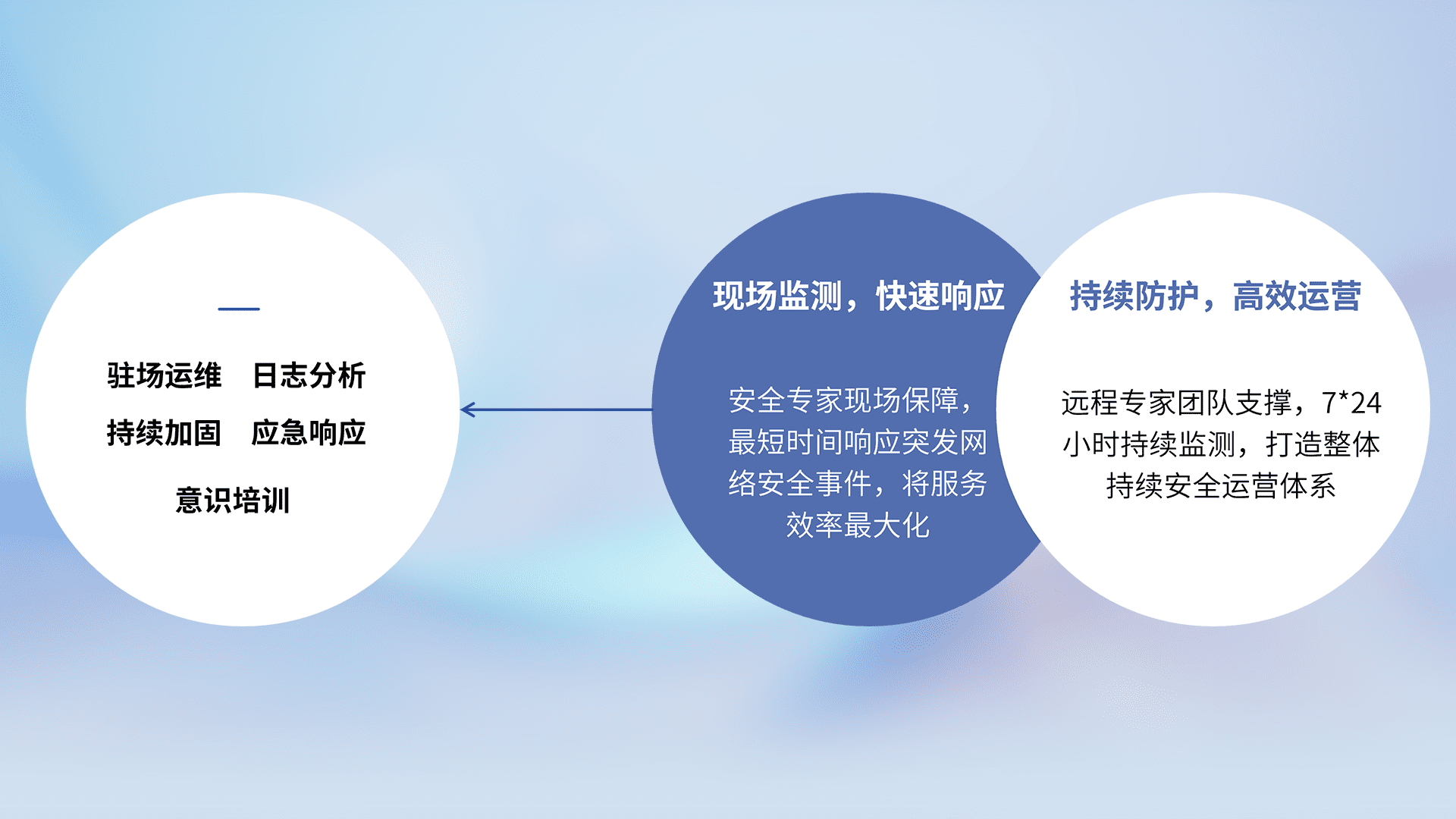 7X24小时持续监测安全事件,保持安全策略有效性,降低资产脆弱性风险,,,,精准拦截黑客攻击,,减少被黑客利用的机会,,,第一时间遏制,,,降低损失。。。。
